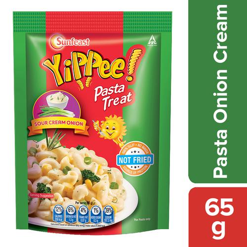 Sunfeast YiPPee! Pasta Treat - Cheesy & Soft Suji, Rawa, Sour Cream & Onion, 65 g