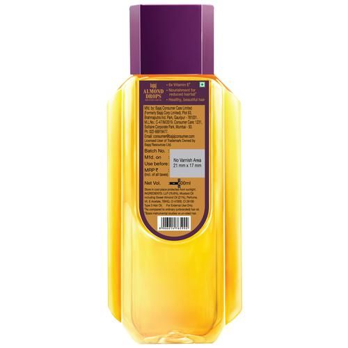 Bajaj Almond Drops Non-Sticky Hair Oil - Helps Reduce Hair Fall, With 6X Vitamin E Nourishment