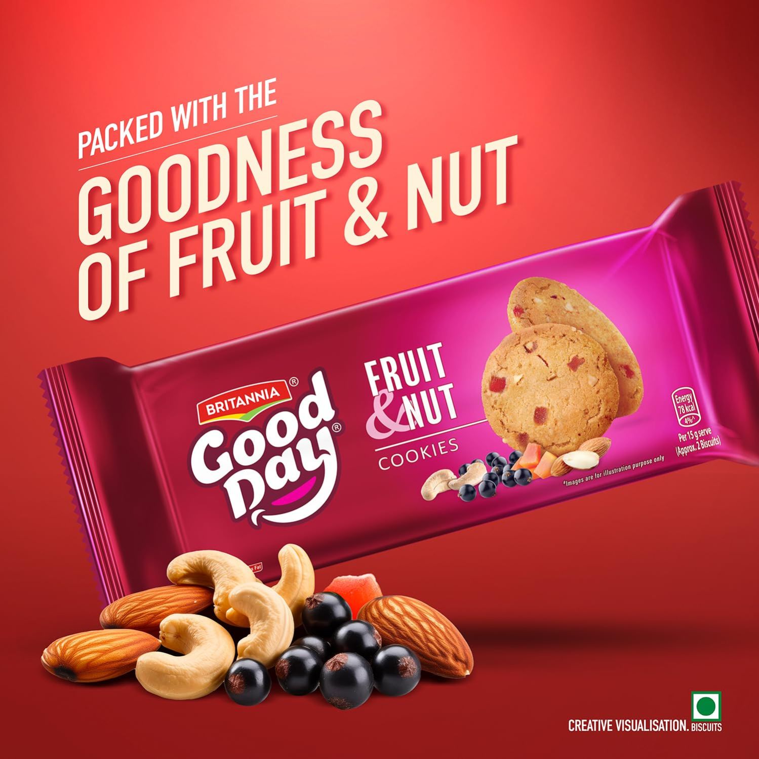 Good Day Fruit & Nut cookies offer a delightful crunch with every bite. Made with a perfect blend of fruits & rich nuts, these cookies offer a satisfying balance of sweetness and nutty flavour. The crispy texture combined with the wholesome goodness of carefully selected ingredients makes each cookie a delicious treat. Ideal for a quick snack or a sweet pick-me-up, they are a tasty way to enjoy the goodness of fruits & nuts.