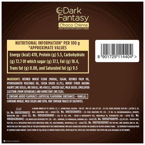 Sunfeast Dark Fantasy Choco Creme, Dark Crunchy Biscuit With Smooth Creamy Layer