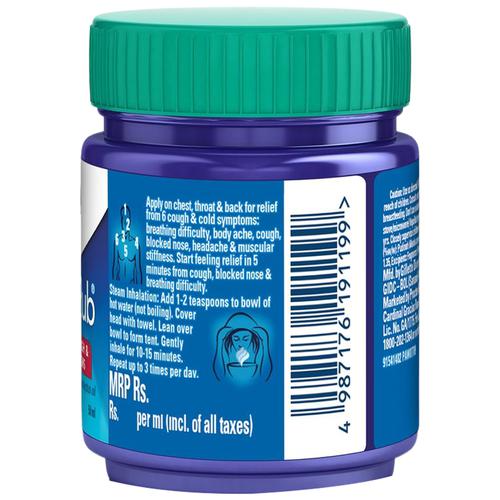 Vicks Vapo Rub With Menthol, Camphor & Eucalyptus Oil - Relieves Cold & Cough, Clears Blocked Nose