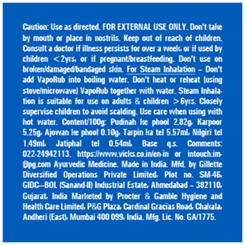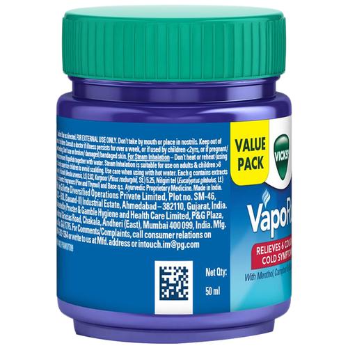 Vicks Vapo Rub With Menthol, Camphor & Eucalyptus Oil - Relieves Cold & Cough, Clears Blocked Nose